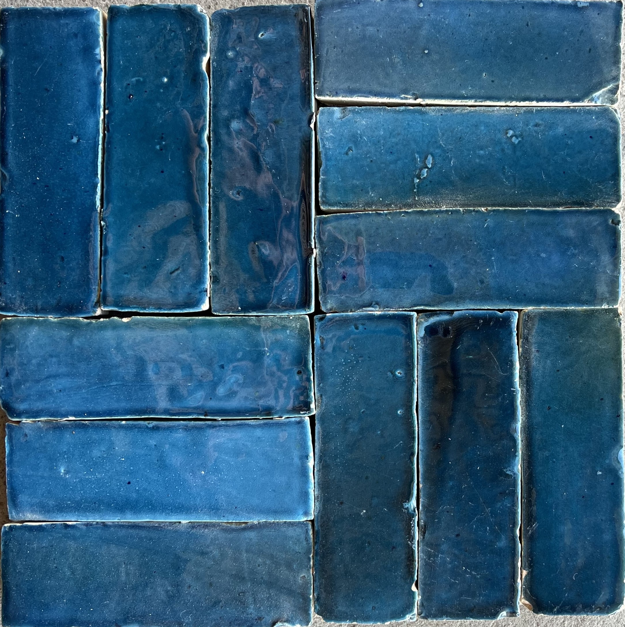 Zellige (zilij) is handmade clay tiles that is glazed and kiln fired, each tile is unique in both shape and colour. The tiles are hand-molded and hand-cut which and splinters will appear from the glaze. Zellige tiles are uneven in structure and thickness, no two Zellige tiles are exactly the same.When the tiles are put in placed and grouted will each tiles imperfection provide the final result with a unique and beautiful appearance.